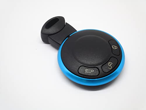 Guscio Chiave Telecomando Compatibile con Mini Cooper One Clubman Countryman Cover Scocca Ricambio 3 Tasti Riparazione Sostituzione Lama Vergine Anelli Colorati (Azzurro)