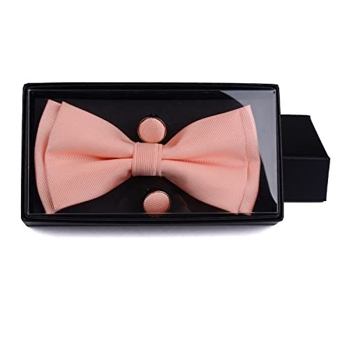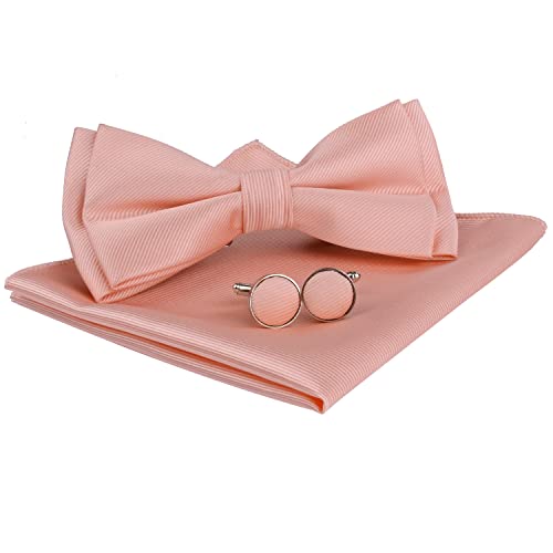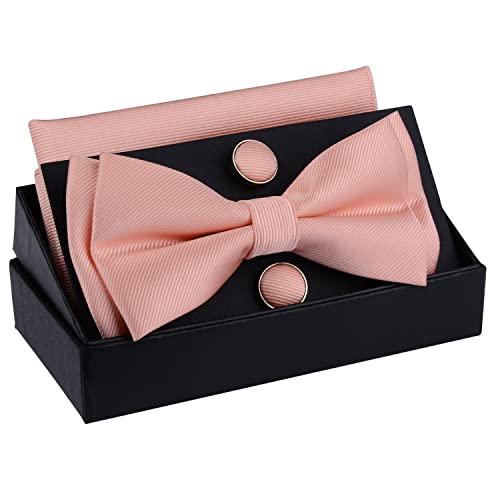 Gusleson Set di gemelli da uomo a due strati pre-legati con papillon e taschino quadrato con confezione regalo, Oro rosa, Medium