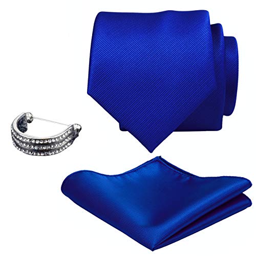 Gusleson 8 cm, tinta unita, cravatta, tasca quadrata e cravatta con chiusura a collare per uomo + confezione regalo, Blu con chiusura in argento, Medium