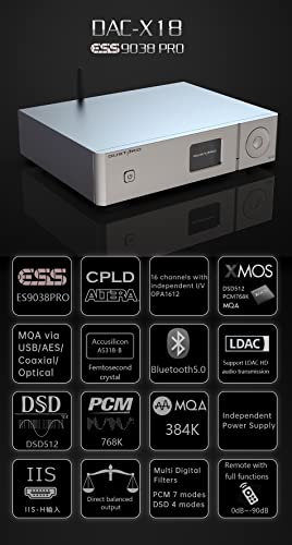 XU216 da XMOS supporta fino a PCM768 e DSD512. Supporta APTX LL, APTX HD e LDAC (fino a 24 bit/96 KHz). Bluetooth può essere disabilitato nel menu.