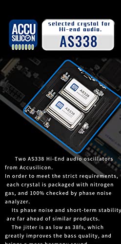 CPLO indipendente per la modellazione del segnale: Nel CPLD per l'elaborazione del segnale, il segnale IIS isolato viene rimodellato per rimuovere il jitter introdotto dall'isolatore . Crystol selezionato per audio Hi-end AS338: due oscillatori audio AS338 Hi-End di Accusilicon. Il jitter è basso come 38fs, il che migliora notevolmente la qualità dei bassi e porta un suono più armonico.
