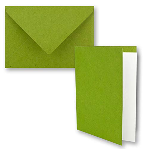 GUSTAV NEUSER - Set di 50 biglietti pieghevoli in carta kraft vintage, con buste e inserti, formato DIN B6, 12 x 16,9 cm, colore: Verde chiaro