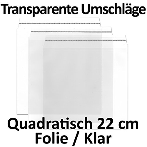 GUSTAV NEUSER Buste trasparenti quadrate 22 cm - 50 pezzi - con chiusura adesiva - Buste trasparenti in pellicola trasparente - 220 x 220 mm - ideali per pubblicità, inviti e regali
