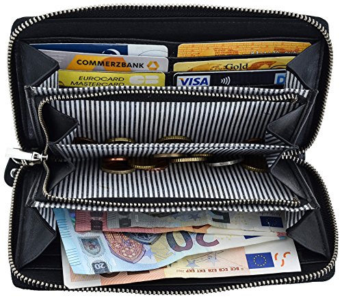 Gusti Leder studio"Iris" portamonete portafoglio banconote monete vintage vera pelle festa disco unisex retrò nero 2A115-33-2