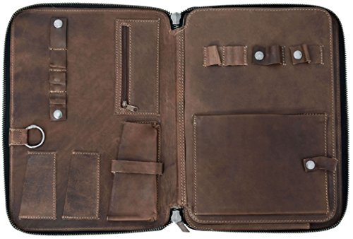 Gusti Leder studio"Mario" organizer per documenti custodia per portatile 11" tablet 7.9" conferenze DIN A4 da lavoro ufficio marrone scuro 2E10-22-6