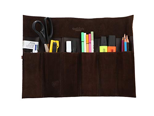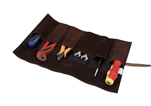 Gusti Leder studio"Rokko" borsa pieghevole a rotolo da lavoro utensili pennelli accessori make up cucito pelle di bufalo marrone antico 2A97-26-3