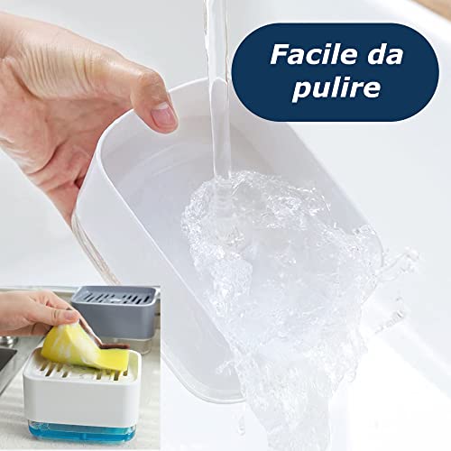 ✔[DESIGN INNOVATIVO]: è possibile dosare il sapone sulla spugna premendola verso il dispenser con una sola mano, facilitando la procedura di lavaggio dei piatti, ottimizzando i tempi ed evitando gli sprechi.
