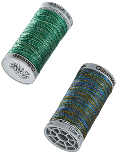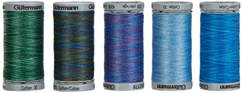 Gutermann Embroidery 30 - Set di fili da cucito, per macchina da cucire, 100% cotone, blu/verde Blu/Verde