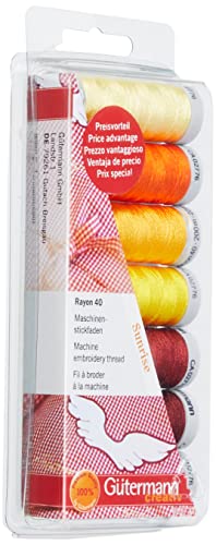 Gutermann - Set di fili da ricamo per macchina da cucire, in 100% viscosa Rayon 40, colore Sunrise