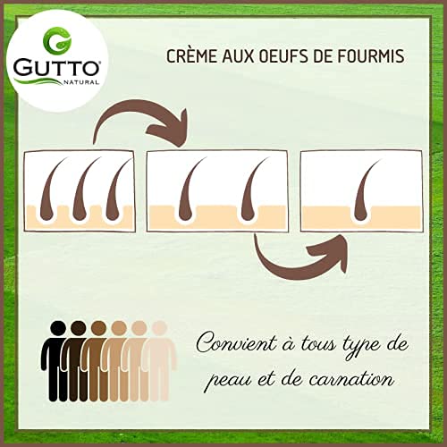 La crema Gutto riduttiva di peli all'olio di uova di formiche è un prodotto completamente naturale, dermatologicamente testato.