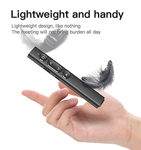 【PUNTATORE ROSSO LUMINOSO INTENSO E GAMMA WIRELESS LUNGA 100 PIEDI】 Il clicker di presentazione di PowerPoint ha un'intensa luce rossa brillante, la sua luce può raggiungere una portata fino a 200 M. (Ma non consigliato per schermi LED/LCD). Il telecomando del presentatore ha una portata wireless di 200 M, ti consente di muoverti liberamente anche in una stanza grande.