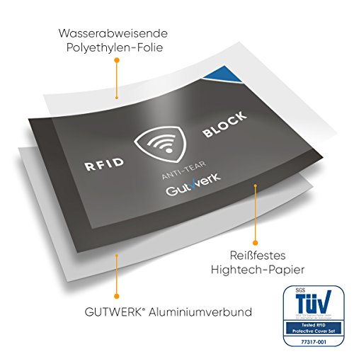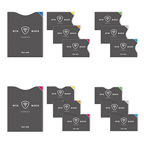 Gutwerk Blocco RFID | Custodia Protettiva NFC Antistrappo [12+2 pezzi] | Carte di Credito, Bancomat, Carta d'Identità Elettronica, Passaporto|100% di sicurezza contro il furto di dati personali