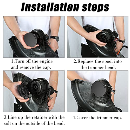 【Risparmio di Manodopera】 La copertura della bobina può facilitare il noioso lavoro di avvolgimento manuale del filo, far scorrere dentro e fuori il tagliabordi, sostituire la bobina del filo per il tagliabordi facile da maneggiare, durevole, risparmiare tempo ed energia
