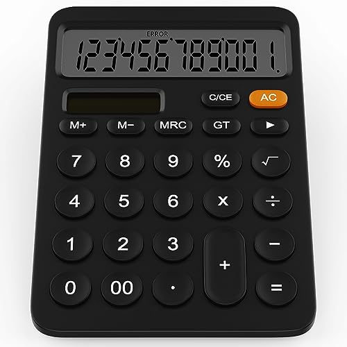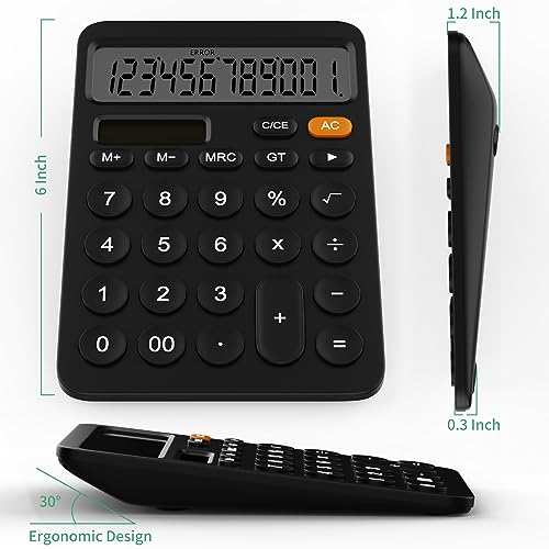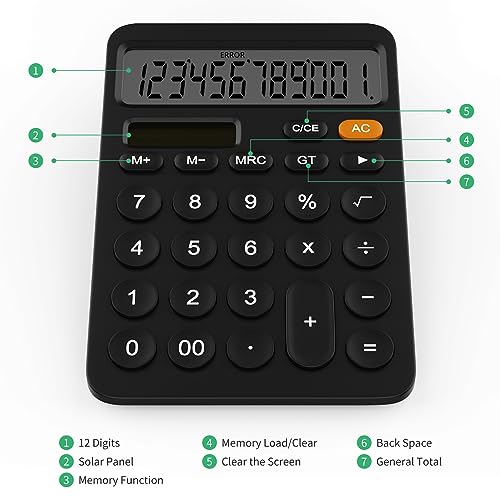 GUYUCOM Calcolatrice a 12 cifre con LCD Schermo, Calcolatrice da Tavolo con Doppia Alimentazione Solare e Batteria Due Energie (Nero)