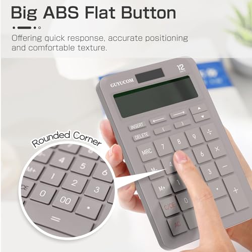 GUYUCOM Calcolatrice da tavolo con registrazione cronologia aggiornata e funzione Track Back, ampio display LCD a 2 righe, 12 cifre, pulsante grande sensibile grigio