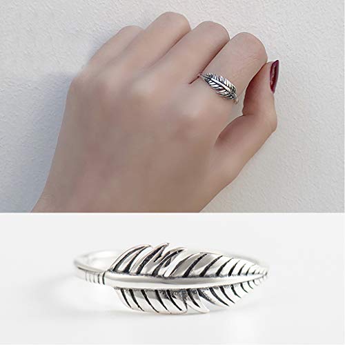 Guzhile Anello in argento Sterling 925, da donna, con piuma, in stile vintage, regolabile, aperto