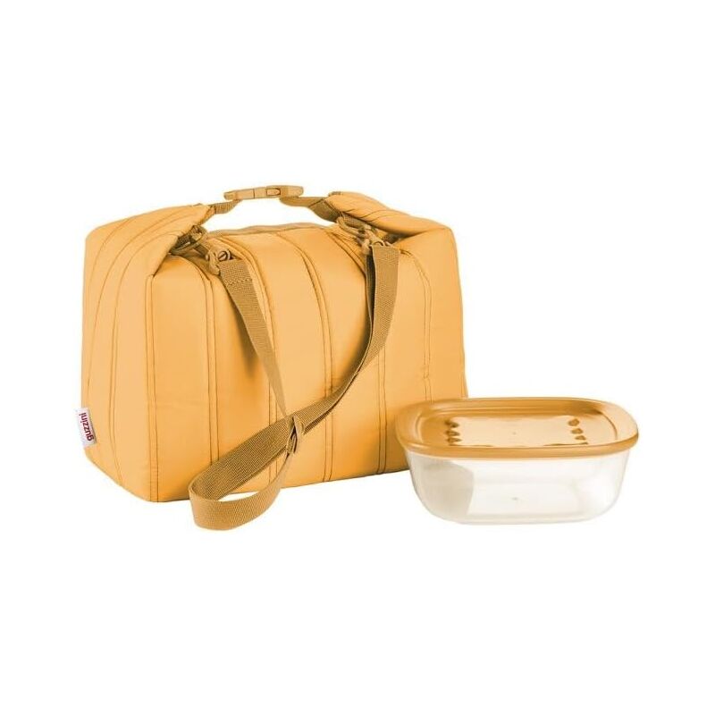 La Borsa Termica Con Contenitore 'Handy Bio' 'On The Go' Giallo Mango di Guzzini, è caratterizzata da un design unico e compatto. Viene venduta con contenitore ermetico, adatto al frigo e al forno a microonde, e con coperchio coordinato al colore della borsa stessa. Un alleato indispensabile per le pause pranzo di ogni giorno ma anche per pic-nic, gite in montagna o piacevoli break a bordo piscina. Caratteristiche della borsa termica: Capiente e salvaspazio Efficace isolamento Pratica da trasportare Sostenibile: Borsa realizzata in plastica riciclata 100% post-consumo;