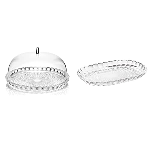Guzzini Set Tortiera Piccola Tiffany, Trasparente, Ø30 x h16 cm & Vassoio a Servire Piccolo Tiffany, Trasparente, 32 x 22.5 x h3 cm