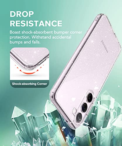GVIEWIN Compatibile con Cover Samsung S23 Galaxy 6,1" 2023, con Pellicola Protettiva in Vetro Temperato + Protezione Obiettivo Fotocamera, Glitter Trasparente Non ingiallente,Glitter