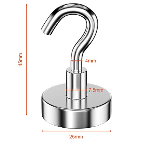 Gvolatee 6 Pezzi 25MM ganci magnetici 12kg forza, gancio magnetico staccabili potente ideale, ganci magnetici rotondi al neodimio per frigorifero da cucina, soffitto, griglia, medio