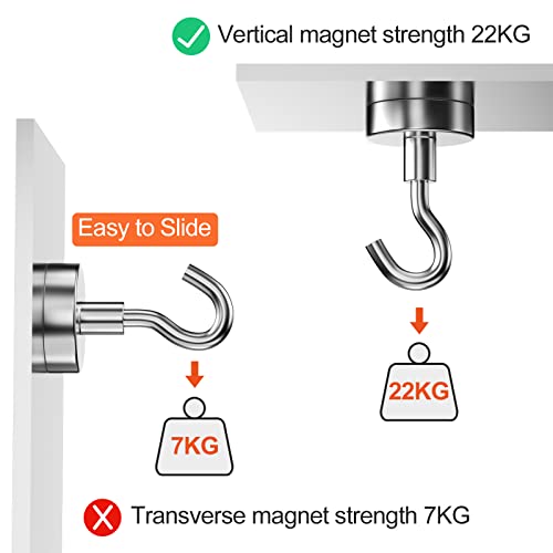 【Materiale di alta qualità】 Il gancio magnetico è realizzato in acciaio A3 di alta qualità e magnete al neodimio di terre rare, che sono robusti e durevoli. L'aspetto del gancio adotta la tecnologia galvanica, che è resistente ai graffi e all'usura, anticorrosione e antiruggine e ha una lunga durata.