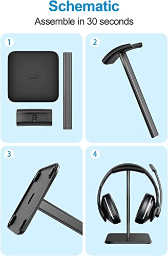 【Facile da montare】 Il headset stand è facile da montare, non è necessaria alcuna colla o perforazione. Hai solo bisogno di combinare le 3 parti entro 30 secondi e avrai un headset stand perfetto e bello con una funzione di archiviazione.