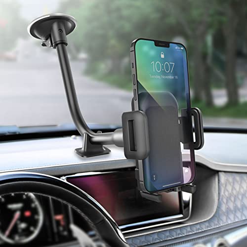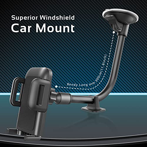 GVTECH Supporto per telefono da auto, universale, per parabrezza dell'auto, flessibile, con braccio lungo, con base extra per cruscotto per iPhone 13, 12, 11, Pro Max Xs Xr, Galaxy S20/S10
