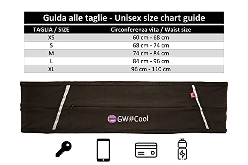 GW#Cool marsupio running cintura belt corsa escursionismo trail fitness sportivo fascia elastico unisex adulto, tasche portaoggetti portatelefono idratazione portaborracce (L)