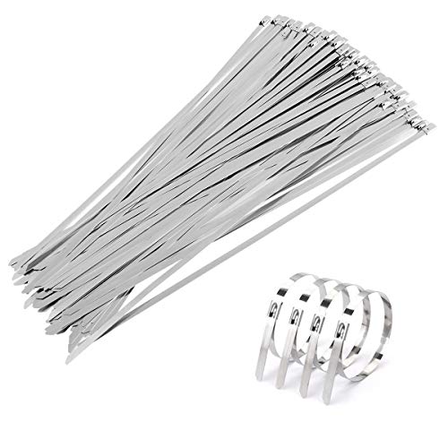 GWHOLE 100pz Fascette per Cablaggio in Acciaio Inox, Cinghie di Fascette per Cavi, Cravatte per Cavi Cablaggio Industriale Cinghie, 4.6 * 300mm