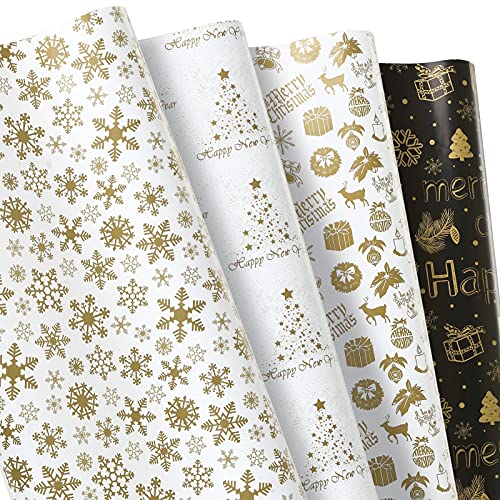 QUANTITà: Totale 16 pezzi con 4 modelli, ogni modello ha 4 fogli. La quantità di carta regalo rotolo è sufficiente per preparare i regali natale.