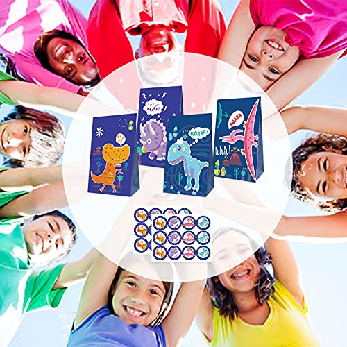 Gxhong Dinosauro Borse Carta Dino Sacchetti di Carta Caramella Sacchetto Borsa da Festa Colorata Acchetto di Carta Kraft, 12 Pezzi Sacchetti Regalo di Carta con 18 Adesivi