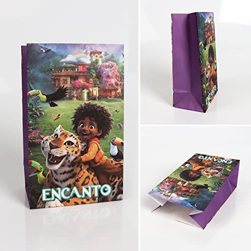 【Sacchetti di carta perfetti】: i sacchetti di carta per feste Encanto misurano 21,5 cm x 13 cm x 8 cm, ogni confezione contiene 12 Borse Carta con 18 simpatici adesivi.