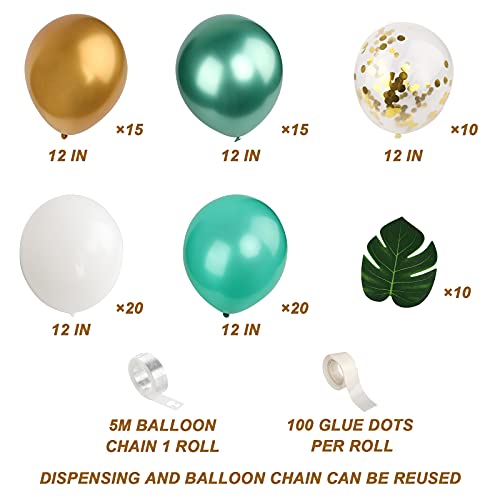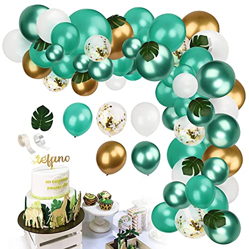 Gxhong Palloncini in Lattice Verde Oro Bianco, Elio Palloncini Arco Kit Giungla Safari Decorazioni Festa di Compleanno Palloncino, Palloncino Coriandoli per Compleanno Decorazioni Hawaiian Party