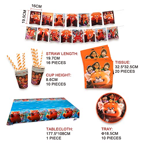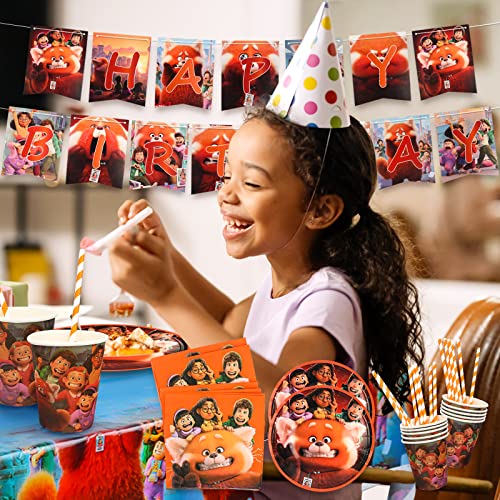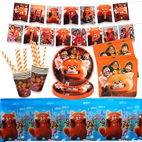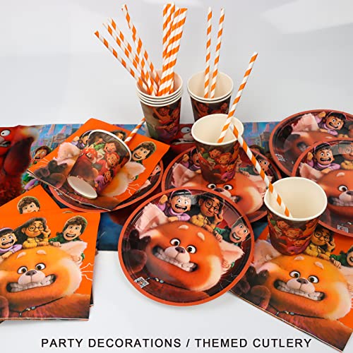 Gxhong Turning Red Decorazione per Feste di Compleanno, Forniture per Festa Compleanno TurningRed Tema Set di Stoviglie per Feste Tazze Piatti asciugamani di carta Cannucce Banner Tovaglia, 52 pcs