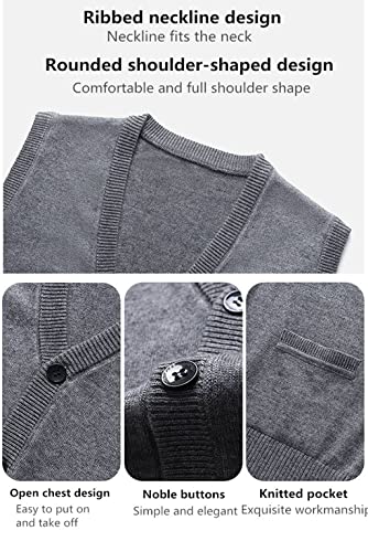 GXIN Gilet di lana da uomo maglione con scollo a V Gilet da lavoro senza maniche con bottoni lavorati a maglia Cardigan (L, Marina Militare)
