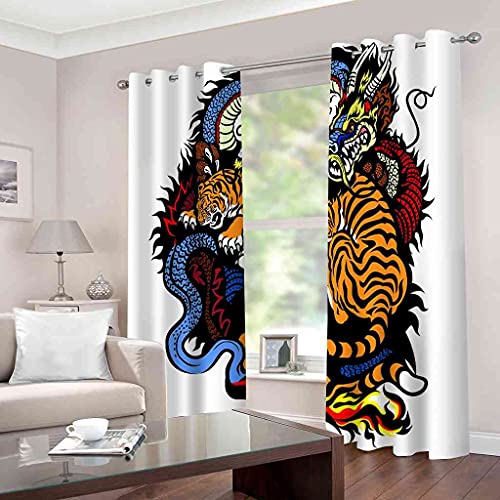 GXLOGA Tende Oscuranti Tende Termiche Isolanti con Occhielli Stampa animale drago tigre Digitale Stampa Tende Antirumore per Soggiorno Camera da Letto Balcone 140x160 cm (LxA) Squisita Decorazione Del