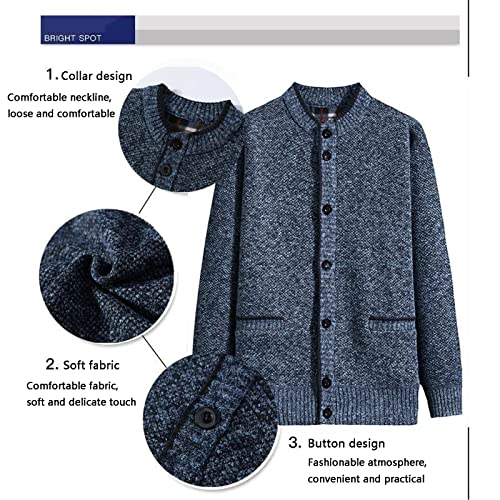 GXWBH Cardigan da uomo lavorato a maglia maglione uomo girocollo slim fit lana maglieria button down cardigan con tasche taglie forti (taglia L, colore: blu grigio)