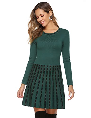 Gyabnw Vestito Casual Invernali Donna in Maglione di Natale a Manica Lunga Abito Girocollo Elegante Trapezio di Strisce Classico di Orlo Svasato al Ginocchio Caldo, Verde, L