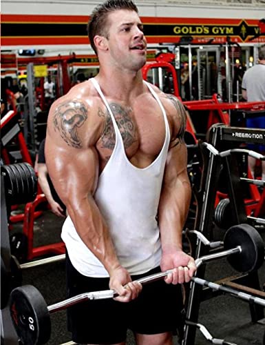 GYMAPE Uomo Canotta da Palestra Allenamento di Bodybuilding Elastico Canotta Cotone Bianca L