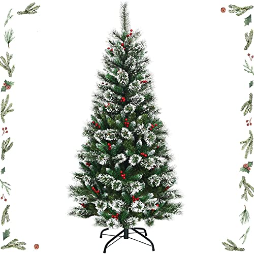 # Aspetto gradevole e decorazioni belle # L'albero di Natale ha le foglie realistiche e spruzzate in bianco come la neve vera coperta su di esse, inoltre dispone di bacche rosse che possono aggiungere una bellezza incantevole all'albero, quindi, è possibile creare un'ambiente festosa più folte.