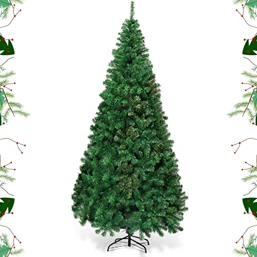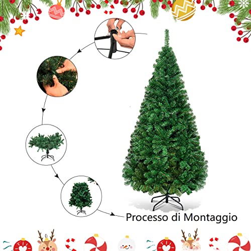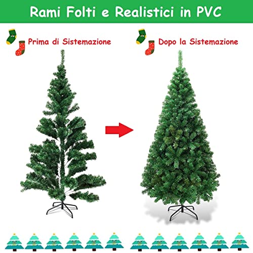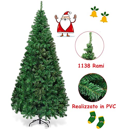 GYMAX Albero di Natale Realistico di 240 cm, 1138 Rami Folti in PVC Ignifugo, Supporto in Ferro, Divisibile per Trasporto e Montaggio Facile, 4 Size Disponibili, Ideale per Interno ed Esterno, Verde