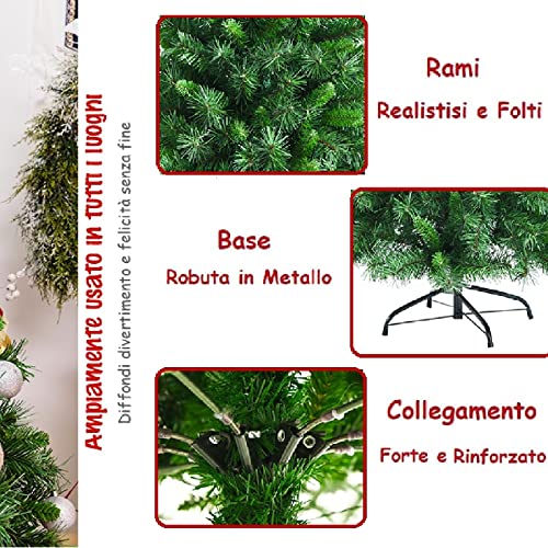 # Aspetto gradevole e realistici # L'albero di Natale dispone di 456/645 rami e una altezza di 150/180 cm che gli conferiscono un aspetto gradevole e realistico, quindi, è possibile aggiungere una bellezza incantevole all'ambiente e creare un'atmosfera festosa più forte.