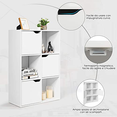 GYMAX Armadietto Libreria Basso a 6/9 Cubi, Scaffale Porta Libri, Mensole a 3 Ripiani, Mobiletto Multiuso Legno, Moderno e Semplice, 60/90x29x90 cm, Bianco