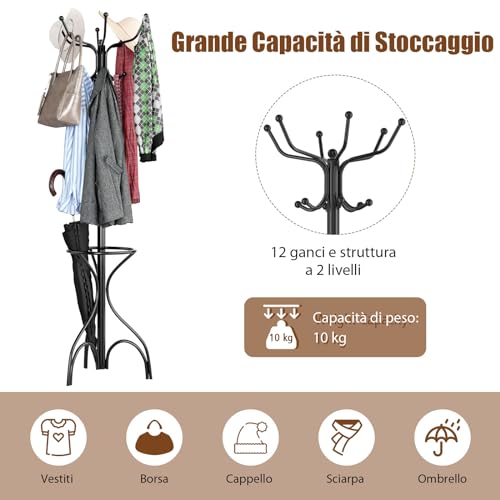 GYMAX Attaccapanni da Terra, Appendiabiti in Acciaio con 12 Ganci, per Ufficio, Soggiorno, Camera da Letto (Stile 2)