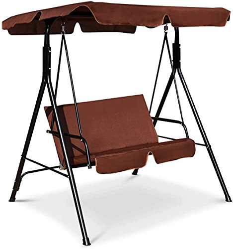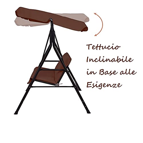 GYMAX Dondolo a 2 Posti in Accaio, Dondolo da Esterno con Tetto Parasole Inclinabile e Resistente al Sole, Ideale per Giardino, Cortile e Terrazzo, 141 x 118 x 154 cm, Portata di 177 kg (caffè)