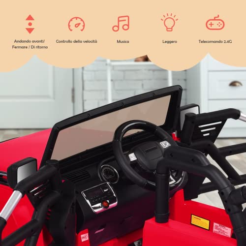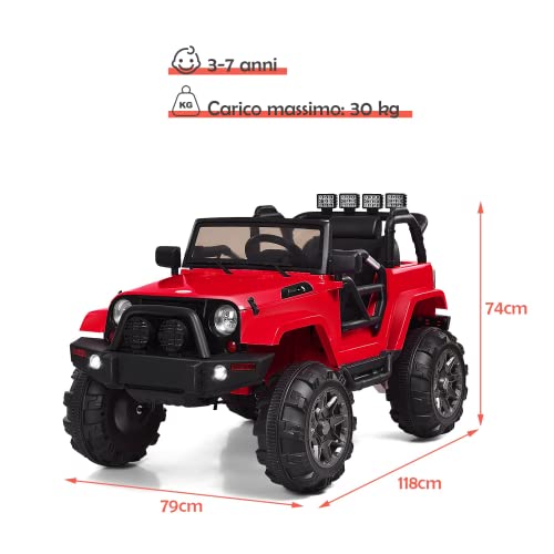 GYMAX 12 V Jeep Elettrica per Bambini, Cavalcabile per 3-7 Anni,con Telecomando, 4 Ruote Antiscivolo, Luci LED,Lettore MP3, E Portata 30 kg, 118x79x74 cm (Rosso)