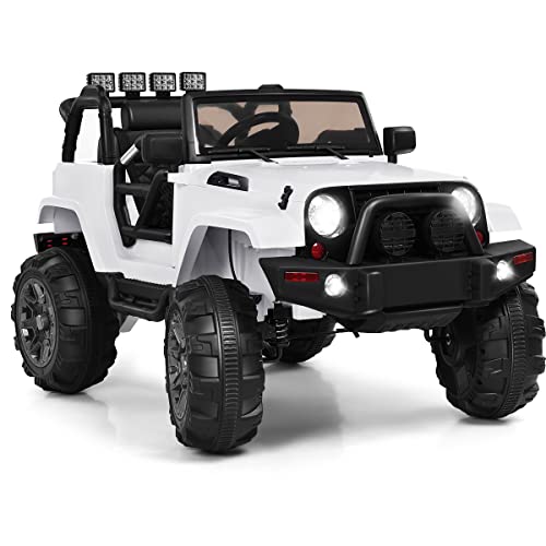 GYMAX 12 V Jeep Elettrica per Bambini, Cavalcabile per 3-7 Anni,con Telecomando, 4 Ruote Antiscivolo, Luci LED,Lettore MP3, E Portata 30 kg, 118x79x74 cm (Bianco)