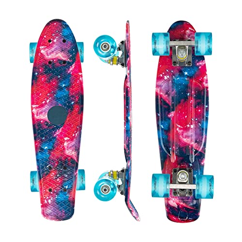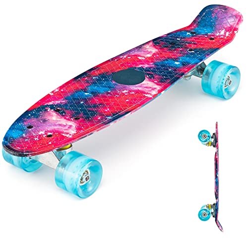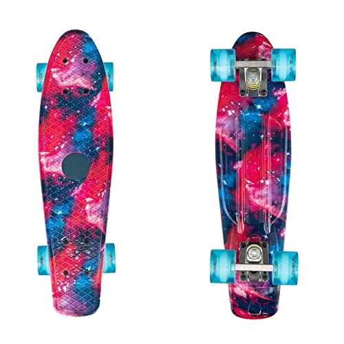 GYMAX Mini Cruiser Skateboard, Tavola Completa 21 Pollici, Portata di 80 kg, Consigliata 5+Anni, Longboard per Bambini/Adolescenti/Adulti, Tavola in PC, Staffa Metallica (Rosa)