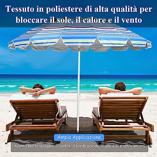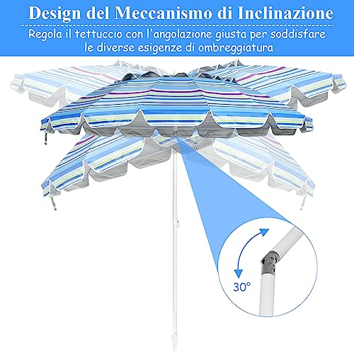 GYMAX Ombrellone da Esterno con 16 Stecche, Ombrellone Inclinabile e Portatile con Copertura Impermeabile e Resistente ai Raggi Solari UV, Ideale per Spiaggia e Giardino, Diametro 2,20 M (Blu)