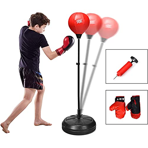 GYMAX Punching Ball Boxe con Base Riempibile con Sabbia o Acqua, Sacco da Boxe da Terra Regolabile in Altezza, con Pompa e Guanti, Ideale per Adulti e Bambini con Età Più di 8 Anni